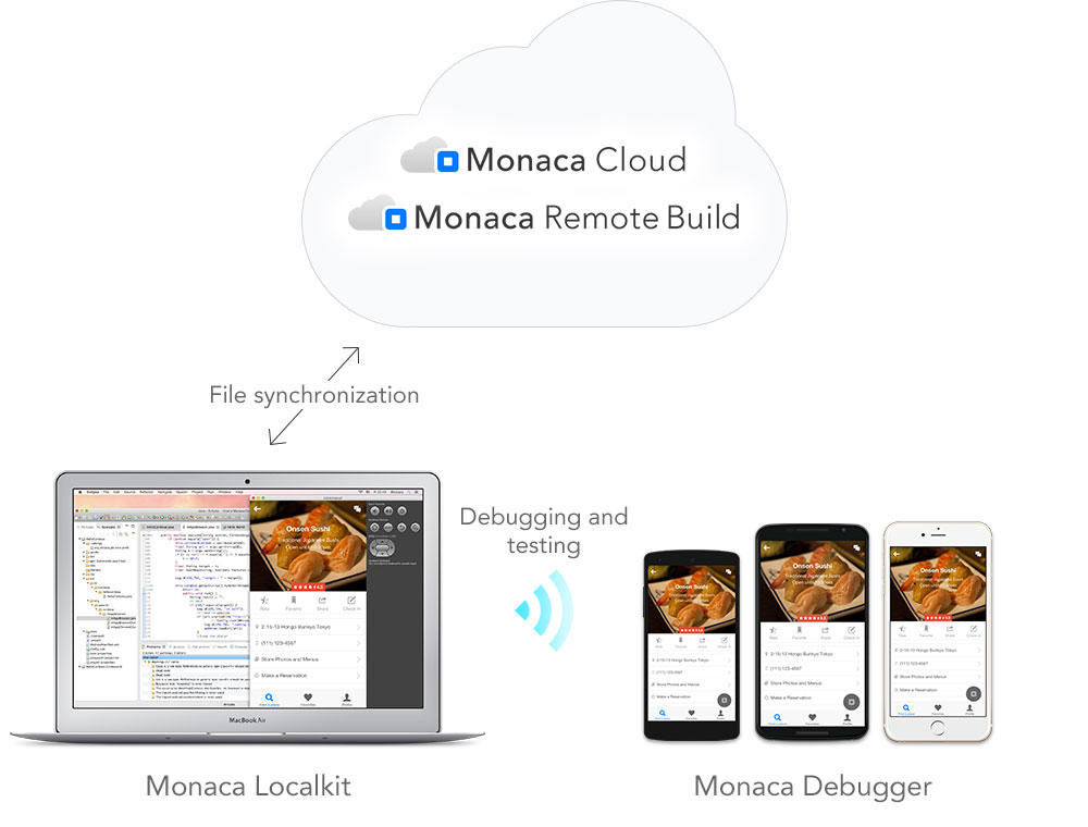 Monaca Localkit is a local environment development support tool offered through our app development platform Monaca. You can achieve better security and peace-of-mind from your own app development environment by combining existing tools like the editor and version management system, with the versatile development support capabilities of Monaca.